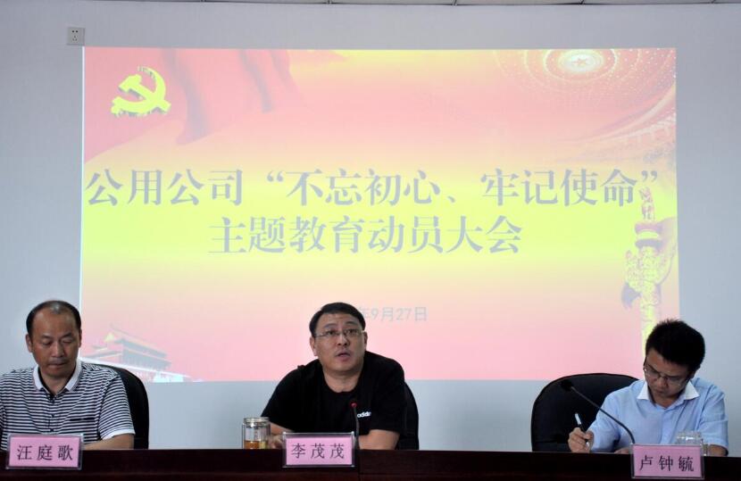 9月27日,公用公司召開“不忘初心、牢記使命”主題教育動(dòng)員大會(huì)。會(huì)議由支部委員、副總經(jīng)理盧鐘毓主持,公司全體黨員、入黨積極分子、中層以上非黨員干部80余人參加。