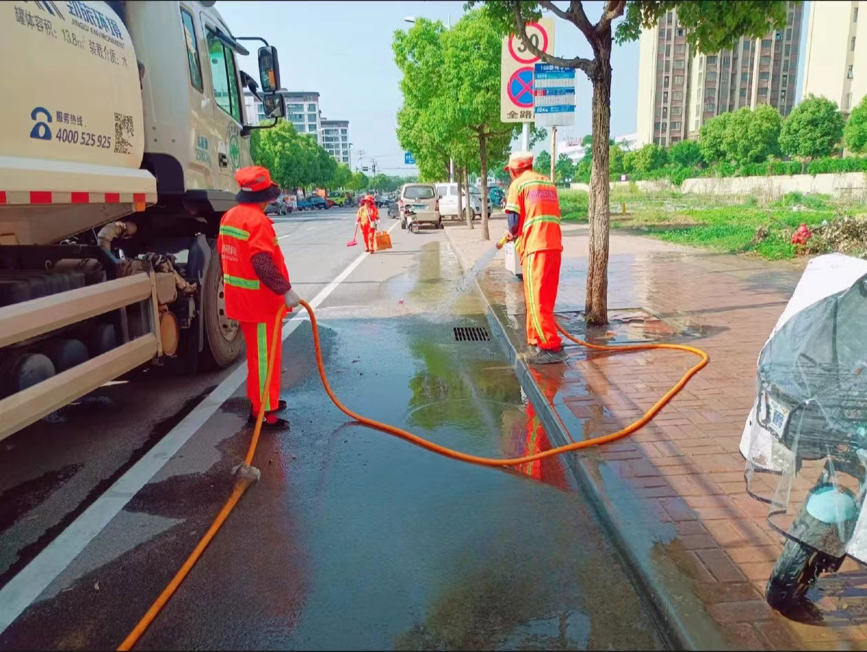 一是對主干道開展機(jī)械沖洗+深度洗掃組合作業(yè),灑水車開啟高壓水槍,沖擊泥沙,隨后洗掃車靠近沖水車道,收集洗掃。二是對人行道、市政附屬設(shè)施等進(jìn)行人工抱管重點沖洗作業(yè),每輛灑水車配備多名保潔人員,分別負(fù)責(zé)擺放安全錐、沖水、抱管和掃水等工作。三是對牛皮癬等采用灑水及刮鏟的方式進(jìn)行清理。
