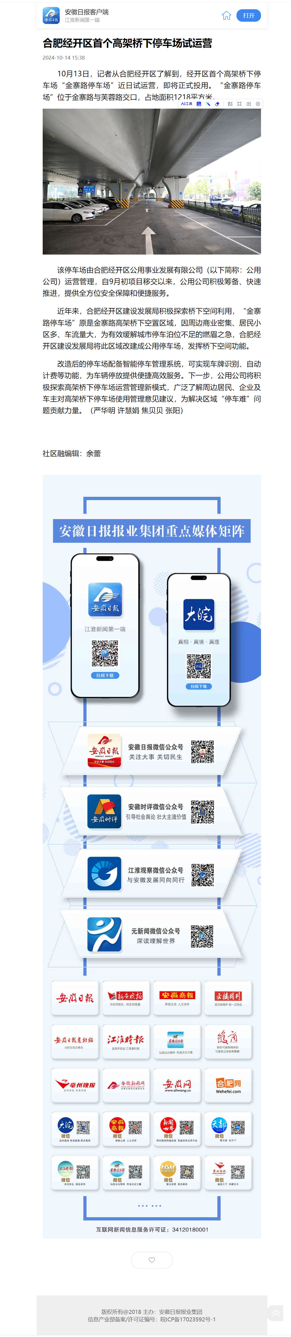 上一條:新華網(wǎng):合肥經(jīng)開區(qū)首個高架橋下停車場試運營