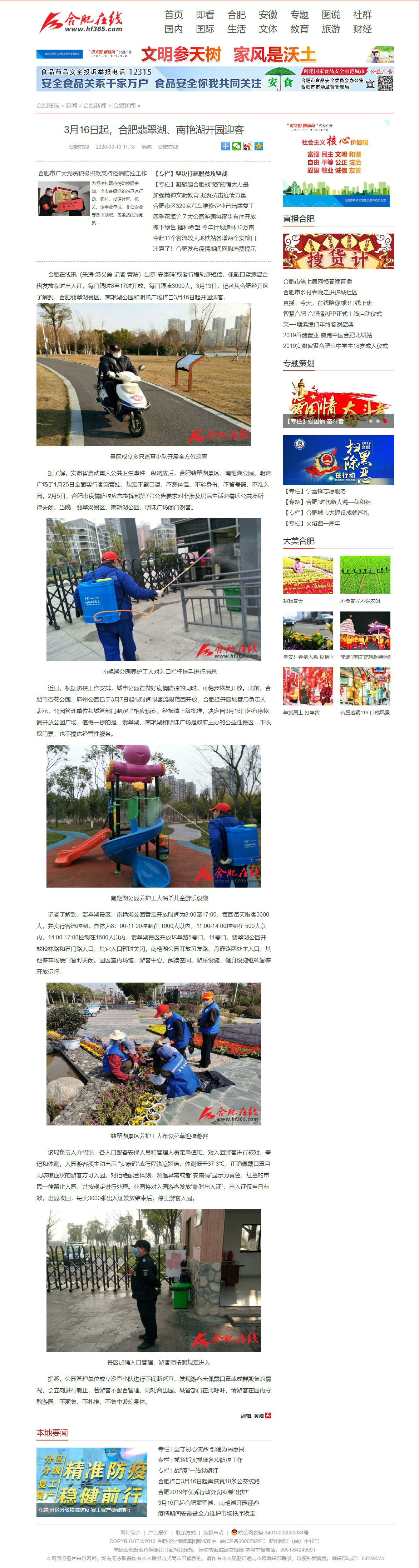合肥在線:3月16日起,合肥翡翠湖、南艷湖開園迎客 http://www.hf365.com/2020/0313/1277093.shtml
