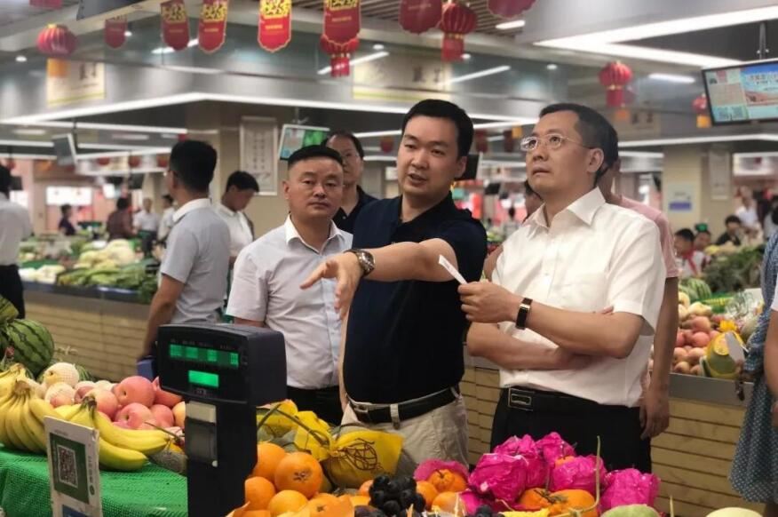 5月31號,河南省安陽市市場監(jiān)管局局長馬紅賓、副局長楊廷海、綜合科科長王改良、副主任科員李志勇一行蒞臨海恒菜市場考察,合肥市市監(jiān)局副局長楊三龍、處長吳東生、副處長吳翔,經(jīng)開區(qū)市監(jiān)局副局長陶有傳、科長王鳳華、中國電科十六所負(fù)責(zé)人江健等參加考察。海恒菜市場總經(jīng)理孫亮堂陪同。