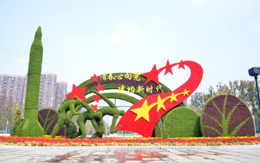 其中一等獎(jiǎng)為 “時(shí)空之夢(mèng)”,此處花展位于翡翠湖公園內(nèi),此處花展以“相框”為印,記錄下建國(guó)70周年以來(lái)祖國(guó)的復(fù)興之路,以“雙手”為依,托舉起中國(guó)人民對(duì)美好生活的向往,以“木橋”為廊,實(shí)現(xiàn)了歷史與未來(lái)兩個(gè)時(shí)空的對(duì)話(huà)。此外,花展主體還安裝了霧化和亮化系統(tǒng),營(yíng)造出更加自然靈動(dòng)的景觀效果;二等獎(jiǎng)——“復(fù)興之夢(mèng)”,此處花展位于繁華大道與金寨路交口西北角,花展以“創(chuàng)新發(fā)展新高地,開(kāi)放包容鑄經(jīng)開(kāi)”為主題,融合了“齒輪”、“旗幟”、“華表”、“迎客松”等景觀元素,寓意經(jīng)開(kāi)區(qū)在改革的歷史大潮中不斷向前,為實(shí)現(xiàn)中華民族復(fù)興之夢(mèng)砥礪前行;三等獎(jiǎng)——“青春之夢(mèng)”,此處花展位于青年廣場(chǎng),毗鄰高校?;ㄕ乖O(shè)計(jì)注重景觀層次,以“奔跑的青年”和“翠綠的樹(shù)苗”體現(xiàn)出新一代年輕人勇往直前、奮發(fā)向上的精神面貌,象征著新時(shí)代青年人在黨的領(lǐng)導(dǎo)下不忘初心,勇敢追逐“中國(guó)夢(mèng)”。