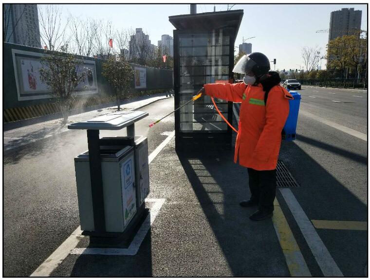 背負(fù)沉甸甸的消毒液,爬過80梯臺階,消殺完近100個(gè)垃圾桶,他們早已汗襟盡濕,每日兩次消殺,他們不放過每一處公交站臺、每一個(gè)雨污井道、每一張休閑座椅,他們用勤勞的汗水換來最安全的生產(chǎn)、生活環(huán)境。