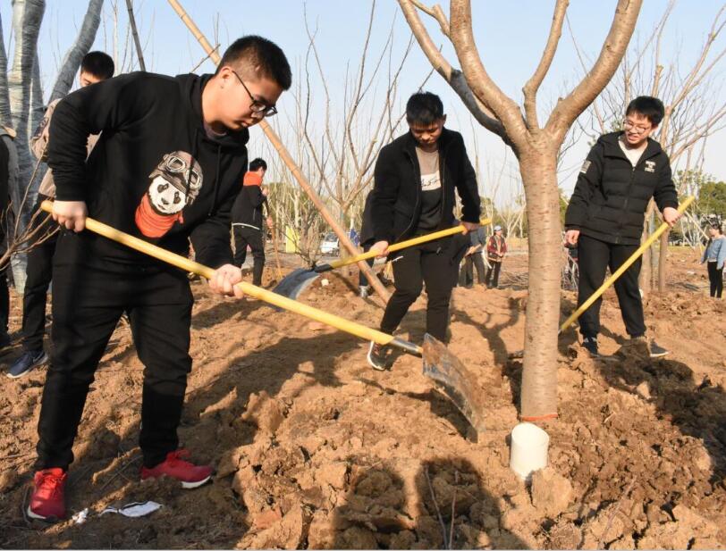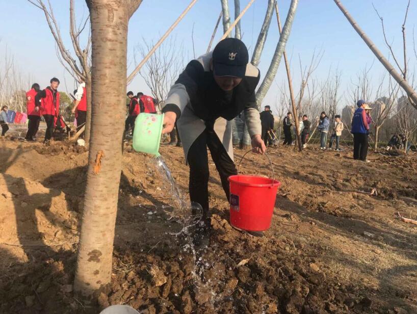3月12日,在翡翠湖風(fēng)景區(qū),來了一群年輕的“環(huán)保衛(wèi)士”,各個(gè)手拿鐵鍬、水桶,為新種植的日本晚櫻進(jìn)行固定、填土、澆水。他們是來自安徽大學(xué)和合肥工業(yè)大學(xué)的學(xué)生。正在開展校地共建翡翠湖“綠色后花園”活動(dòng)。
