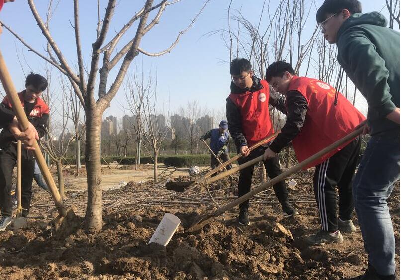 據(jù)了解,此次活動(dòng)共有50余名學(xué)生參加,累計(jì)種植了32株日本晚櫻,分布在翡翠湖西門種植帶上,明年4-5月份將會(huì)迎來花期。