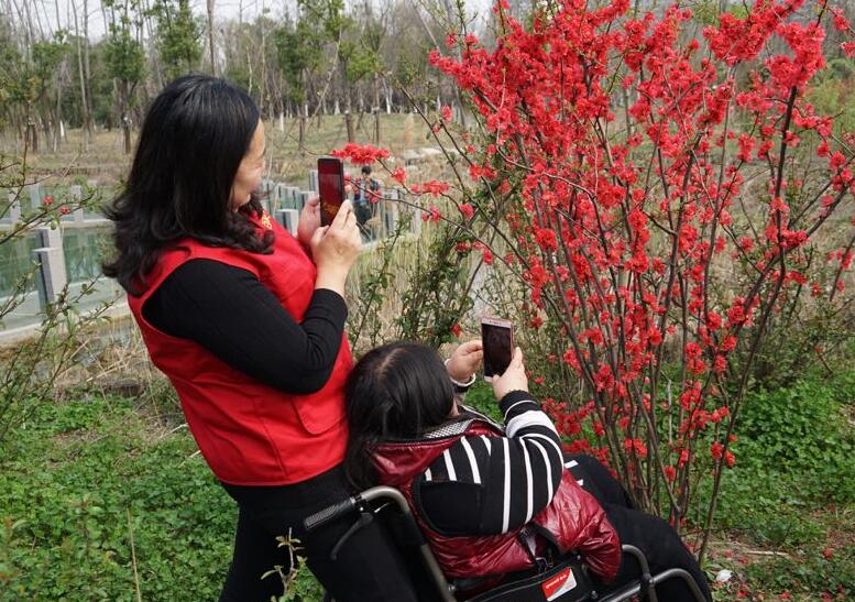 “好久都沒(méi)有出來(lái)走走了,今天的春光春景真的很久都沒(méi)有享受過(guò)了,真漂亮。”黃春霞說(shuō)道,坐在輪椅上的5年里,這是她第一次這么暢快的春游體驗(yàn)。而57歲的曹龍霞更是露出久違的笑臉,坐在輪椅上跟志愿者們一直在拍照。“特意跟兒女們要了一個(gè)帶攝像頭的手機(jī),好好拍拍春天的景色。”