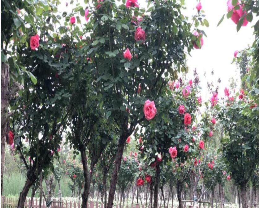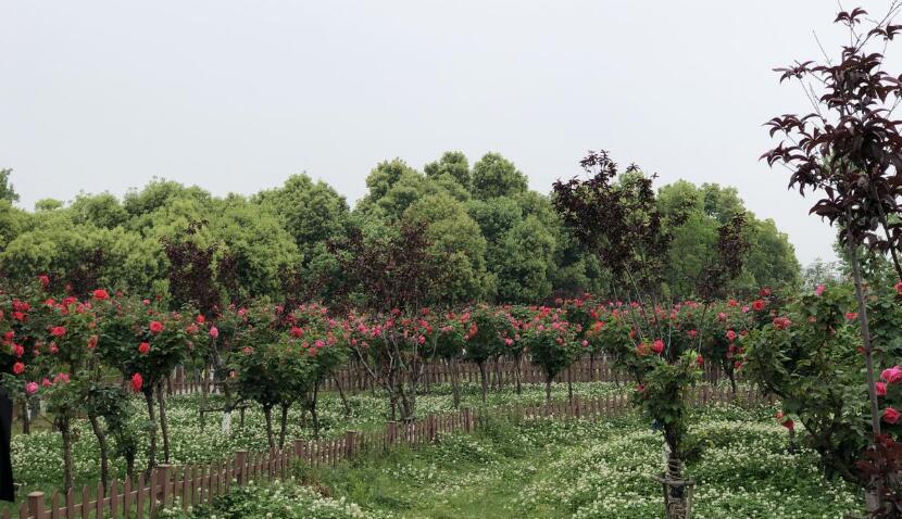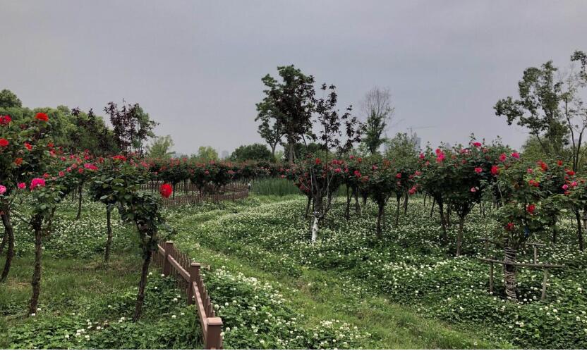 春末夏初,季節(jié)交替,氣溫正好,微風(fēng)不燥,月季園里的月季爭相怒放,密密匝匝開滿了枝頭。兩千多株月季,紅粉兩色,相互交錯,艷麗妖嬈,千嬌百媚,不是玫瑰卻更勝玫瑰,細聞之下還有淡淡花香,不負“花中皇后”之名。