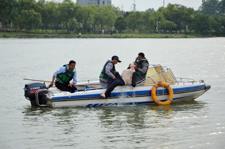 6月11日下午4時,經(jīng)開區(qū)翡翠湖風景區(qū)南大壩附近人頭攢動,有人不慎落水,情況十分緊急。景區(qū)救援人員立即開動便攜式水上救生艇駛入水域開展急救,游至落水處,雙手從后背托住落水者,拉到?jīng)_鋒舟里,隨后回到岸邊開始進行心臟復蘇施救,并送至120急救車。一分鐘不到的時間,落水人員就已成功得救。