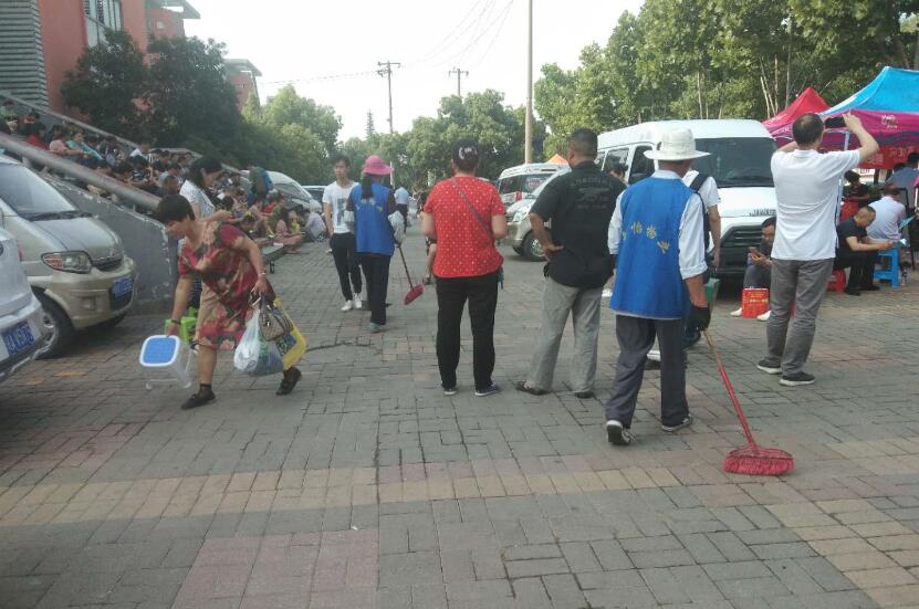 高考期間正值端午節(jié)假期,后勤服務(wù)中心工作人員放棄假期休息,在烈日炎炎下全力維持現(xiàn)場秩序,引導車輛有序停放,保障考生準時進入考場。此外,在考試進行期間,工作人員保持巡查,制止各類制造噪音的行為,并引導陪送家長前往相關(guān)地點避暑納涼。