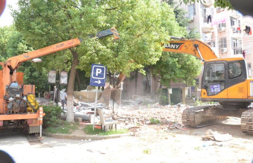 在正式開展拆除作業(yè)之前,朝霞園管理處聯(lián)合社區(qū)委對(duì)違章建筑相關(guān)責(zé)任人員進(jìn)行約談。通過(guò)開展安全生產(chǎn)與法制教育,違建方認(rèn)識(shí)到自身存在的錯(cuò)誤,同意社區(qū)委、城管局、物業(yè)管理處所提出的拆違要求,隨后在挖掘機(jī)的轟隆聲下,占地45㎡的違章建筑轟然倒下,很快化為一片廢墟,破損的瓦礫散落在周邊。管理處組織保安開始維持現(xiàn)場(chǎng)秩序,保障作業(yè)人員順利開展工作,作業(yè)人員迅速將建筑垃圾裝上垃圾車后送往垃圾處理廠。經(jīng)過(guò)一天的建筑拆除、垃圾清運(yùn)工作,盤踞小區(qū)消防通道多年的違章建筑終于消失了。