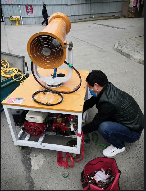 在了解到匯林園小區(qū)消毒工作所遇到的困難后,小分隊成員中立即有人想到可通過改裝倉庫里臨時閑置的綠化噴霧機,并將其用于小區(qū)消毒工作,以達到省時省力的效果。小分隊帶頭人黃圣發(fā)通過多方聯系,個人墊資采購改裝配件。在經過三個小時的細致調試安裝后,小分隊第一時間將設備送到了匯林園小區(qū)現場。通過網絡信息平臺,每次收到消毒設備故障信息后,立即拿起工具包趕赴現場檢修,確保消毒設備正常運行,絕不耽誤消毒作業(yè)進度。
