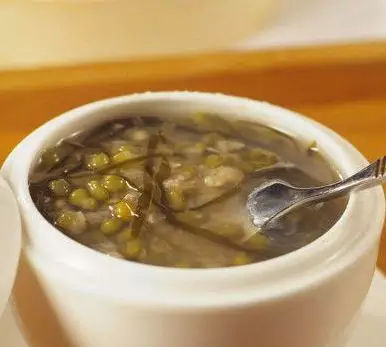 綠豆、海帶各100克,大米適量。將海帶切碎與其它2味同煮成粥??砷L(zhǎng)期當(dāng)晚餐食用。