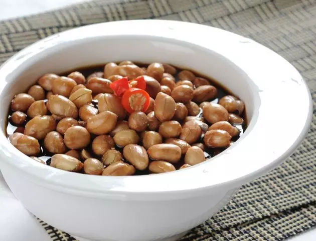 生花生米浸泡醋中,5日后食用,每天早上吃10~15粒,有降壓、止血及降低膽固醇作用。