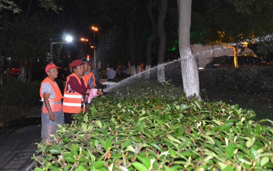 “天氣高溫,植物水分蒸發(fā)量大,我們都是在晚上溫度較低的時(shí)間段對(duì)植物進(jìn)行澆水,避免高溫時(shí)段澆水作業(yè)?!?月5日晚上10點(diǎn),正在繁華大道上作業(yè)的養(yǎng)護(hù)人員盛勇說道,“像這樣的各類灑水車我們有20多輛,每天在傍晚6點(diǎn)在專用的取水泵取水,再進(jìn)行灑水作業(yè),一直作業(yè)到凌晨1點(diǎn)左右,保障全區(qū)的綠化苗木在高溫里‘消渴解暑’。”