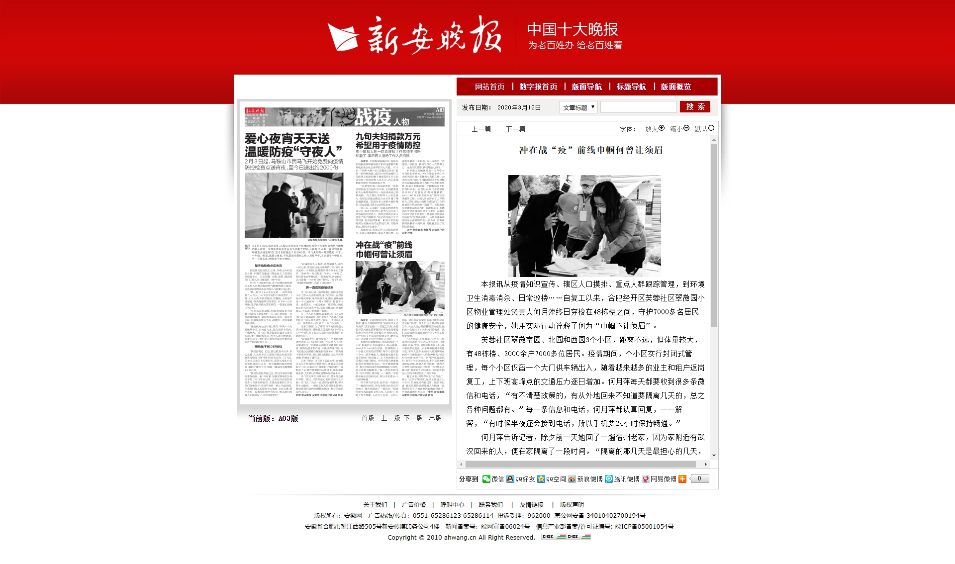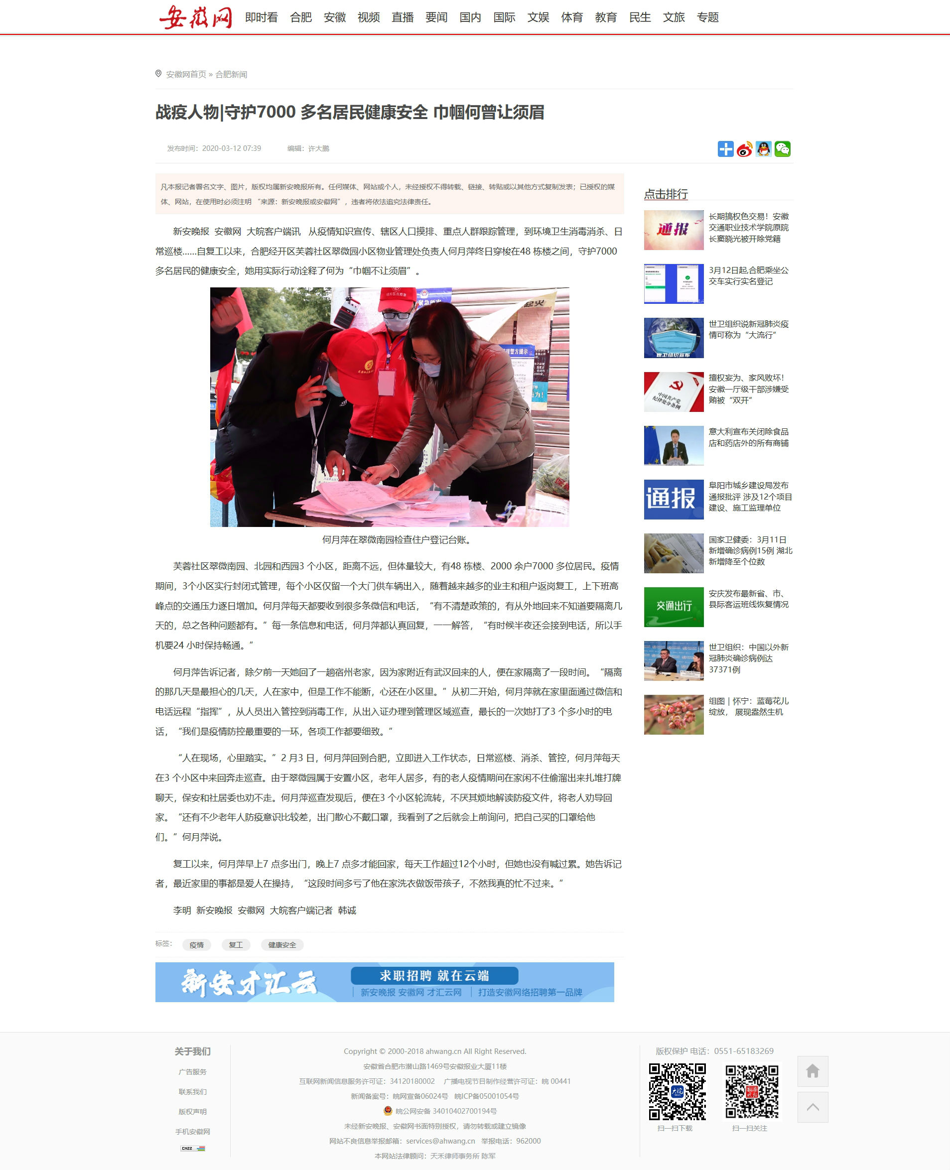 安徽網(wǎng):戰(zhàn)疫人物|守護(hù)7000 多名居民健康安全 巾幗何曾讓須眉:http://www.ahwang.cn/hefei/20200312/2004255.html