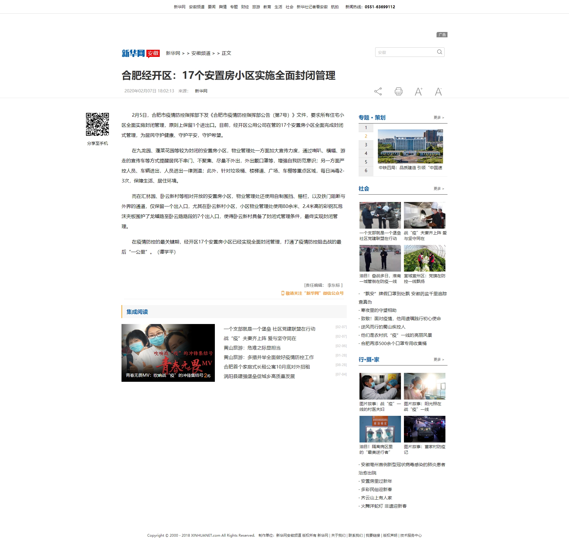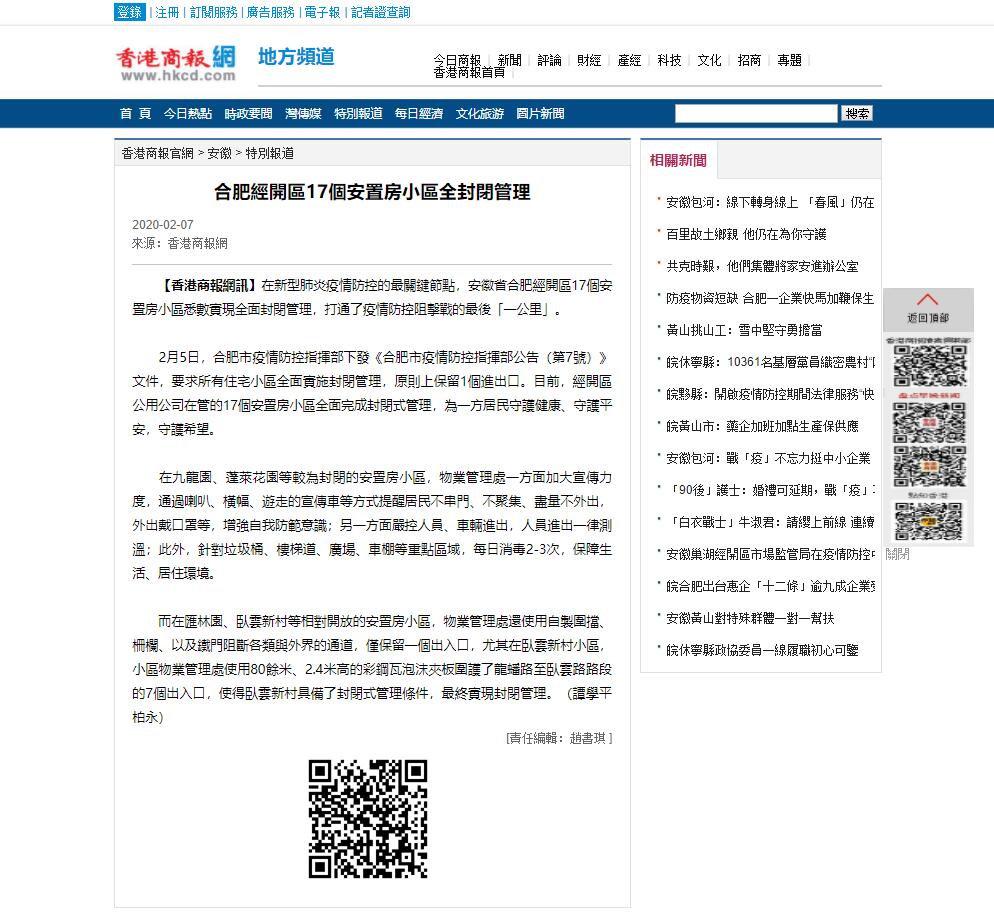 新華網(wǎng)、香港商報(bào):合肥經(jīng)開(kāi)區(qū):17個(gè)安置房小區(qū)實(shí)施全面封閉管理: