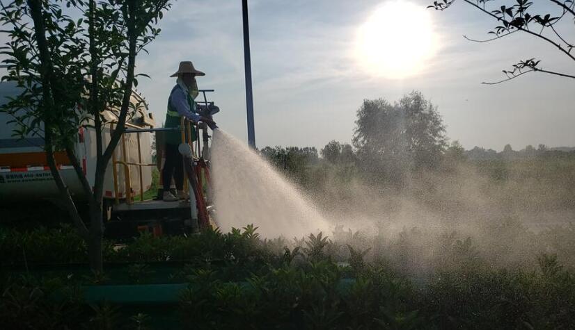 自高溫以來,北區(qū)已連續(xù)18天不間斷地循環(huán)作業(yè),全方位對管養(yǎng)范圍內(nèi)綠化進(jìn)行澆水、灌溉。旱情還在繼續(xù),空港分公司將立足于“抗大旱、抗長旱”,全力以赴抗旱保苗。