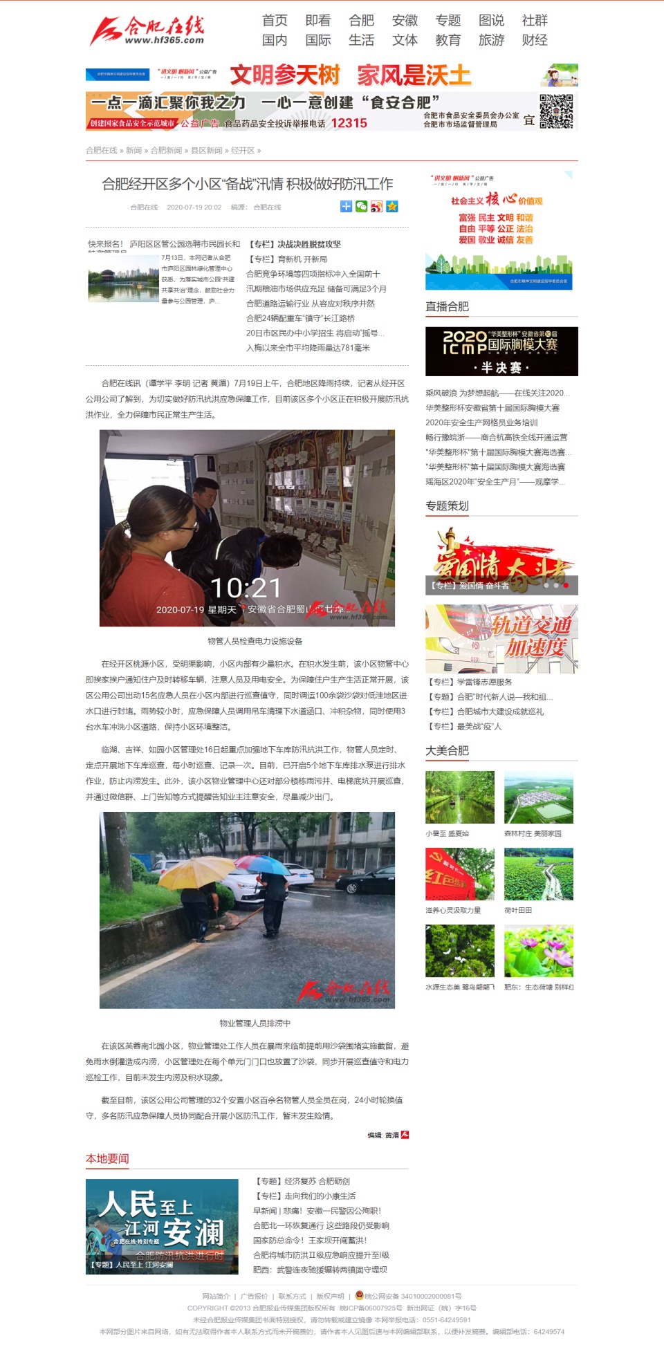 合肥在線:合肥經(jīng)開區(qū)多個(gè)小區(qū)備戰(zhàn)“汛情” 做好防汛應(yīng)急保障工作:http://www.hf365.com/2020/0719/1303179.shtml