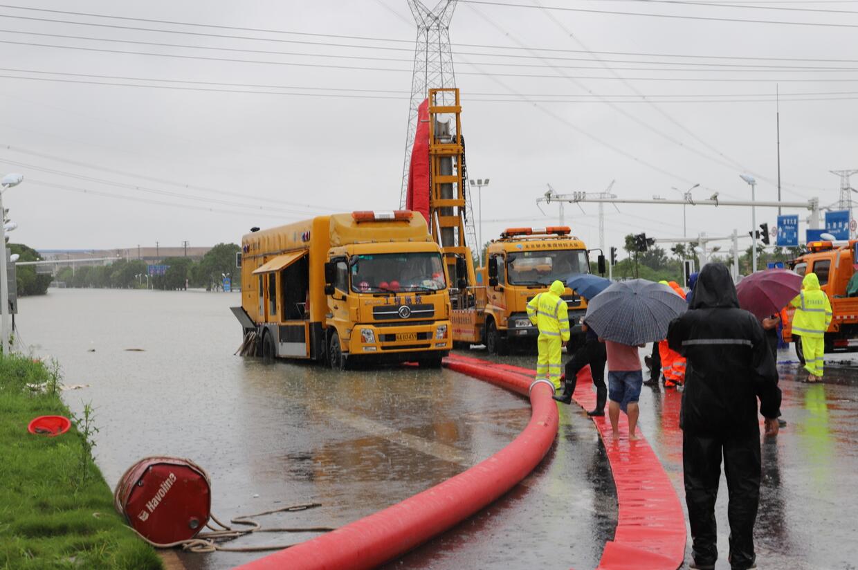 由于18日降水量突破極值。經(jīng)開區(qū)云谷路部分路段積水嚴(yán)重,公司應(yīng)急保障人員第一時(shí)間奮戰(zhàn)在現(xiàn)場,“白”+“黑”開展應(yīng)急搶險(xiǎn)工作,現(xiàn)場隔離交通,引導(dǎo)車輛繞行,同時(shí)緊急出動備用機(jī)動泵車和機(jī)動搶險(xiǎn)人員增援、及時(shí)排澇。溝通相關(guān)單位出動防汛力量支援,經(jīng)過近一天的緊急搶險(xiǎn),云谷路周邊企業(yè)被困群眾順利得到救助,路段積水勢頭得到遏制。