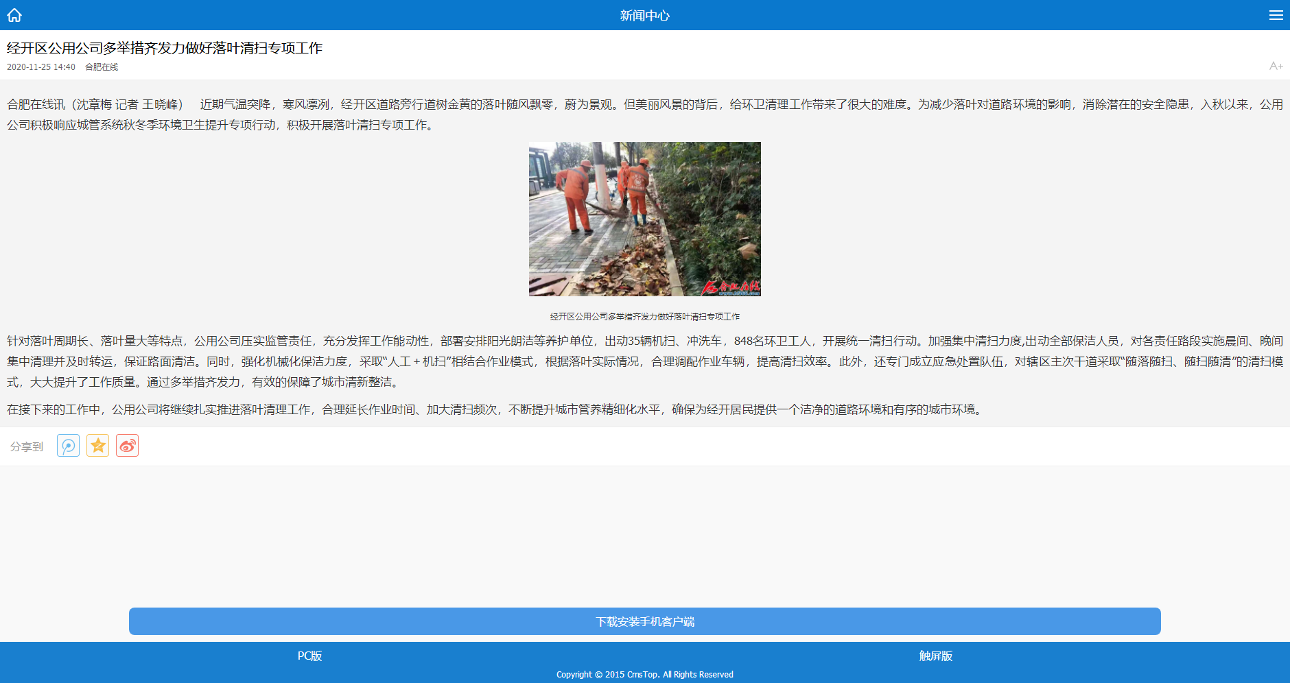 合肥在線:經(jīng)開區(qū)公用公司多舉措齊發(fā)力做好落葉清掃專項工作 http://m.hf365.com/article/91367