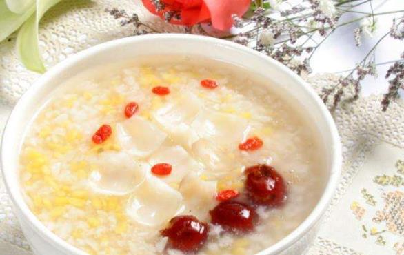做法:將粳米淘洗干凈,放入鍋內(nèi);玉米粉放入大碗中,加冷水調(diào)稀,倒入粳米鍋內(nèi),再加水適量。將盛有粳米和玉米粉的鍋置武火上熬煮,邊煮邊攪動,防止粘鍋,至米爛粥黏即可。