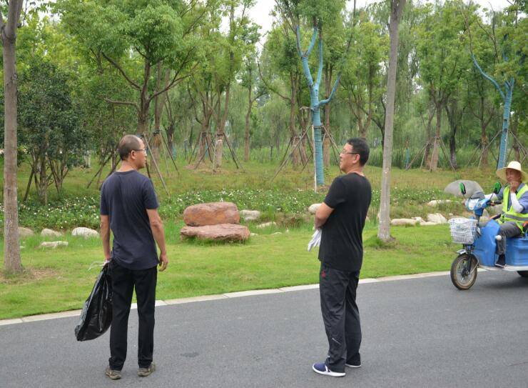 9時整大家集合后,工會主席盧燕翔宣布活動開始。志愿者們分為四組,走進南艷湖公園,沿著林間小道,細(xì)心地搜索每一個角落,撿拾市民隨手丟棄的煙頭、紙屑等雜物,用實際行動為市民做表率。
