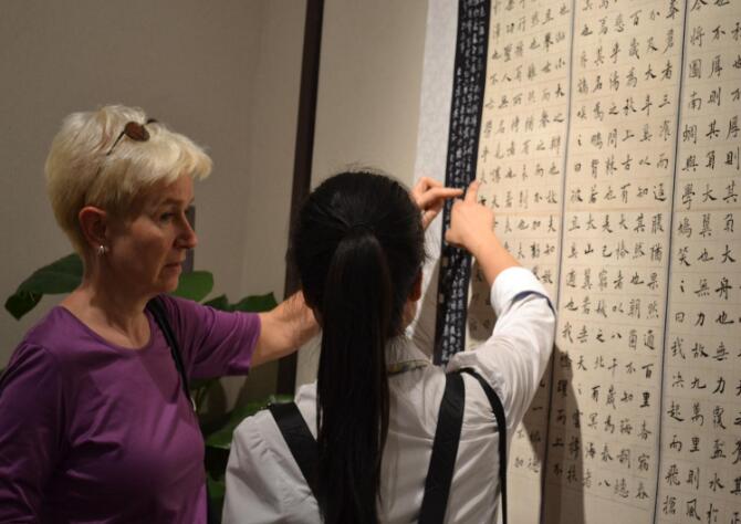 代表團(tuán)首先參觀了世博安徽館,在聽完工作人員對安徽的建筑、石器、瓷器及非物質(zhì)文化遺產(chǎn)等介紹后,對安徽的文化產(chǎn)生了濃厚的興趣。在原上海世博安徽館展示廳以立體式多媒體的播放形式再現(xiàn)了“四水歸堂”的場景和安徽各地的美景,使他們真切到感受到徽文化的魅力。隨后,代表團(tuán)先后參觀了書法館、皖江文化博物館、黃山園等特色景點、場館。參觀結(jié)束后代表團(tuán)一行紛紛表示徽園環(huán)境安靜,景色優(yōu)美,了解了徽文化內(nèi)涵豐富,也通過此次參觀對中國的文化有了更深的印象。