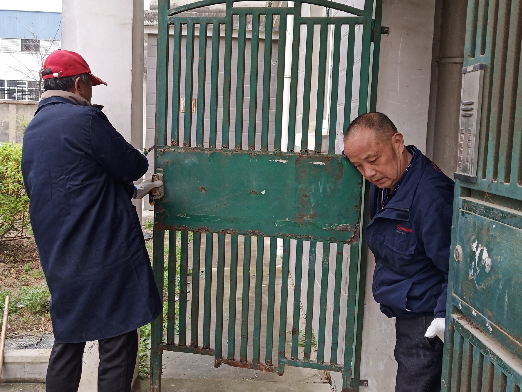 3月17日上午,物業(yè)管理中心組織4名維修工前往天都公寓,配合天都公寓物業(yè)管理處拆除10扇銹蝕單元門。