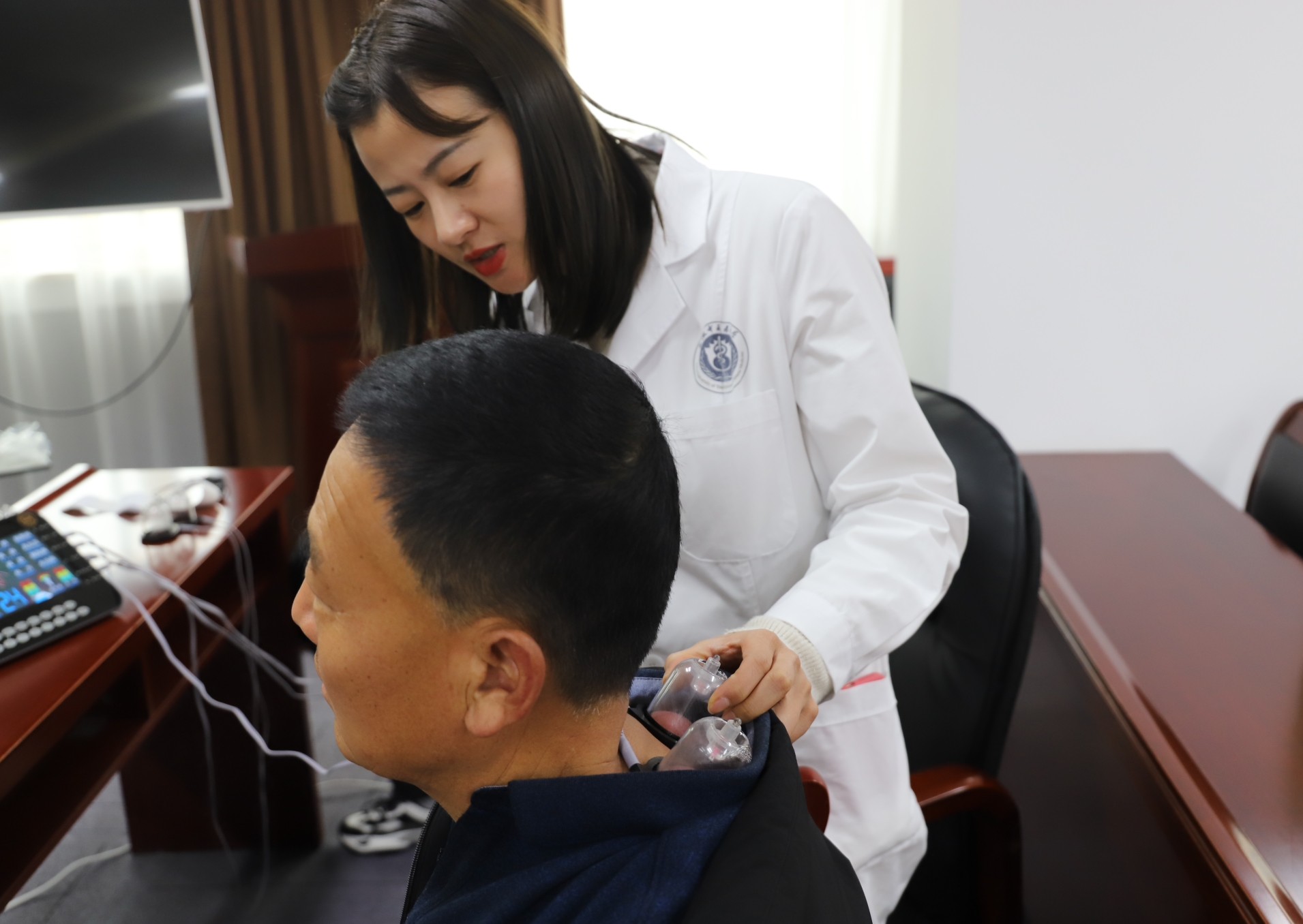 活動現(xiàn)場,醫(yī)師通過中醫(yī)診斷、測量血壓等方式為公司員工進(jìn)行體質(zhì)辨識,指導(dǎo)員工如何通過中醫(yī)手段進(jìn)行健康管理,鼓勵員工樹立良好心態(tài)、養(yǎng)成健康生活習(xí)慣。同時,現(xiàn)場免費(fèi)提供了中醫(yī)物理診療服務(wù),參與員工紛紛表示受益良多。