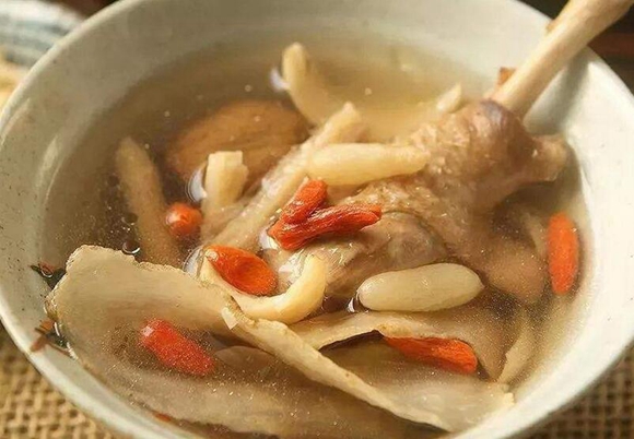 制作:先將鴨肉洗干凈,切成小塊;百合洗干凈。將鴨肉與百合、沙參同入沙鍋,加水適量,文火慢燉,待鴨肉熟后,加入少許精鹽、味精調(diào)味,飲湯食肉。