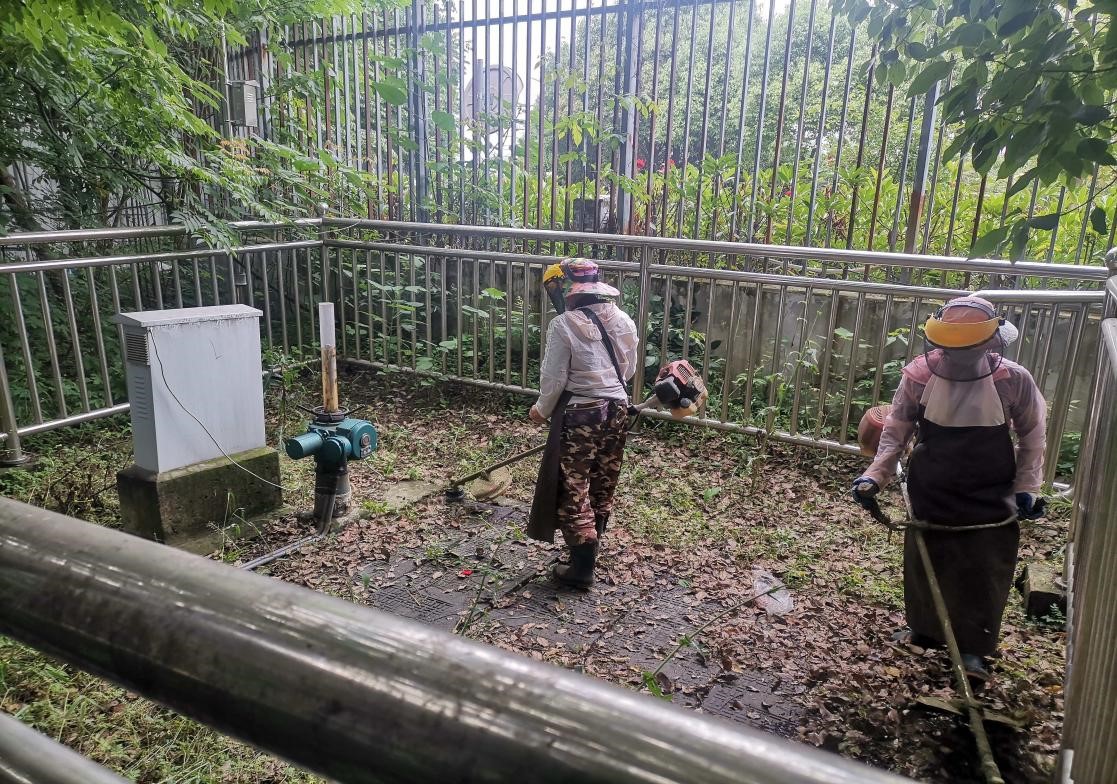 為保證所管轄的截流閘綠化美觀整潔,同時降低草叢過高帶來的潛在的火情風險,廠站處按養(yǎng)護規(guī)章要求,每年春夏兩季都會定期對截流閘管理范圍開展除草。5月18日上午,排水管理中心廠站處管理人員安排除草人員,攜帶兩臺除草機對管轄區(qū)13座自動化截流閘展開除草和衛(wèi)生清理。
