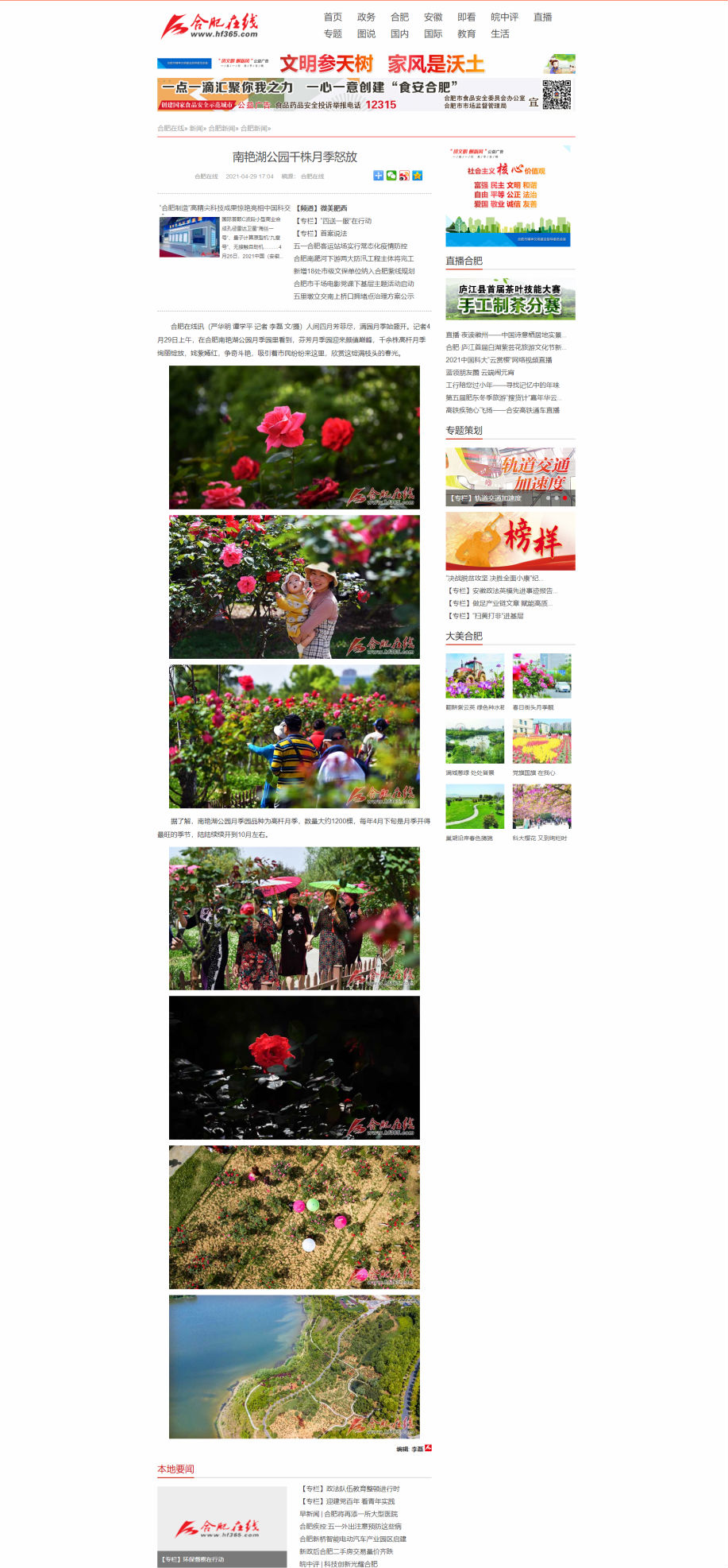 合肥在線:南艷湖公園千株月季怒放 http://www.hf365.com/2021/0429/1348913.shtml