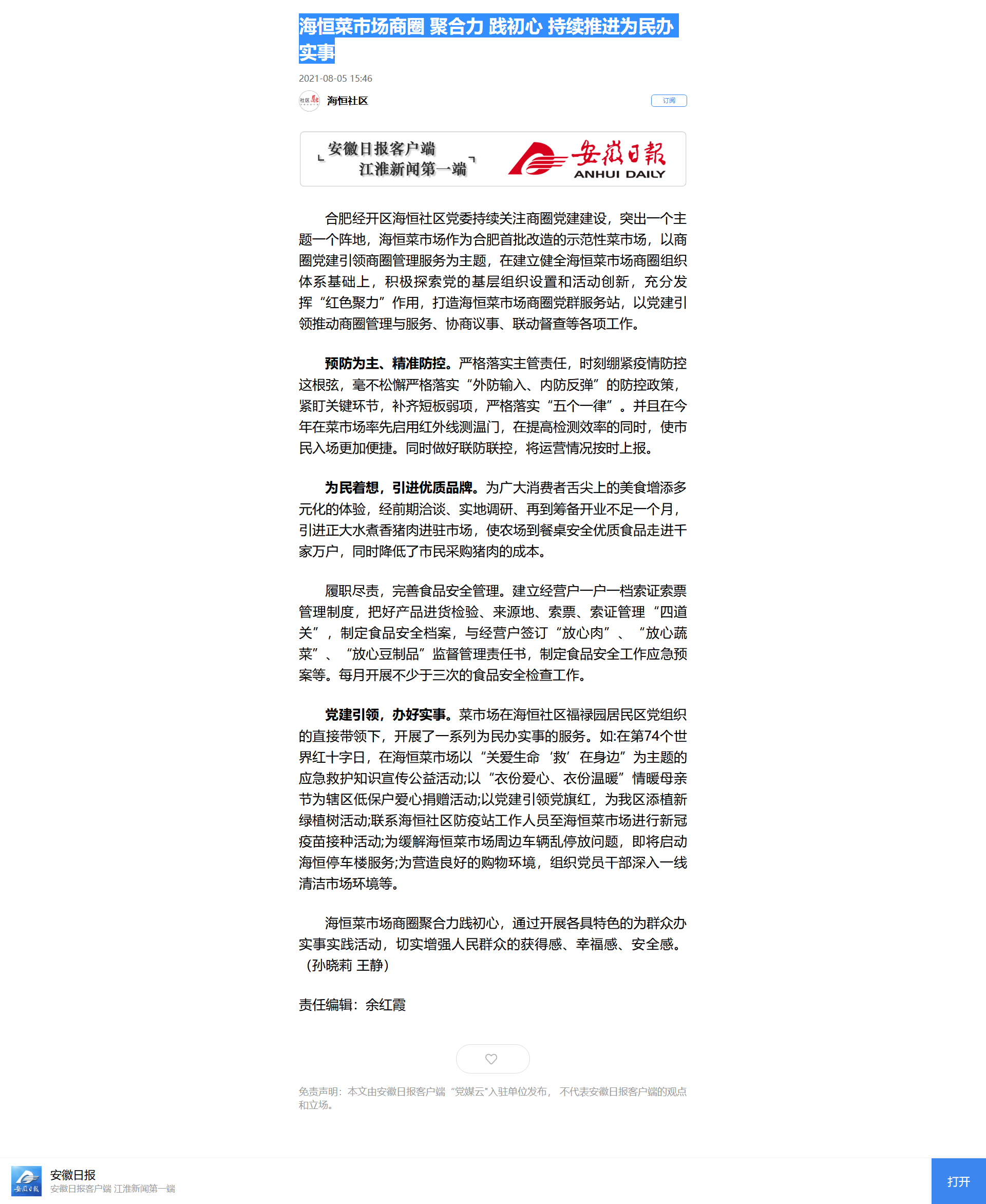 海恒菜市場商圈 聚合力 踐初心 持續(xù)推進為民辦實事https://app.ahnews.com.cn/displayTemplate/news/newsDetail/1537/402248.html?isShare=true