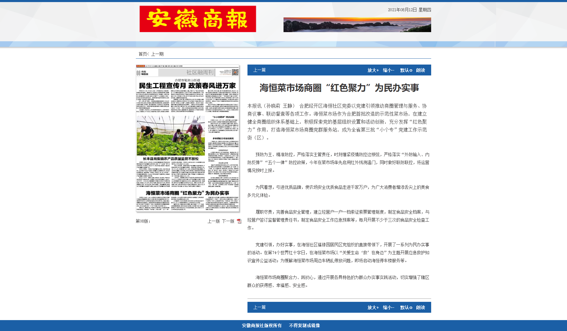 安徽商報:海恒菜市場商圈“紅色聚力”為民辦實事https://szb.ahnews.com.cn/ahsb/pc/con/202108/12/c850984.html