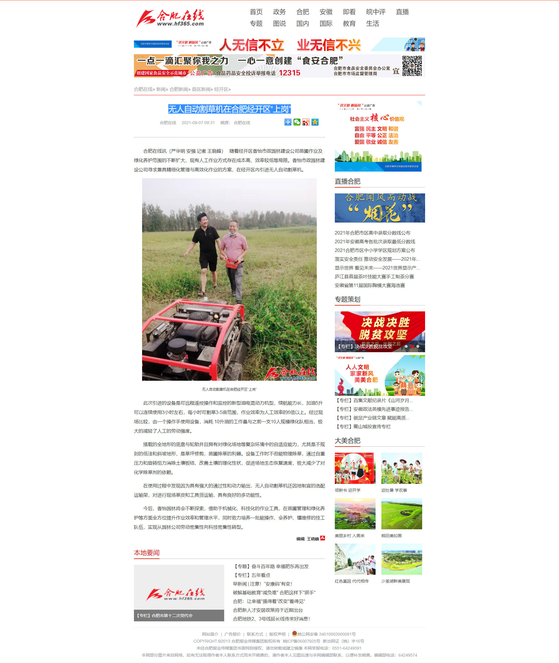合肥在線:無(wú)人自動(dòng)割草機(jī)在合肥經(jīng)開區(qū)“上崗”http://www.hf365.com/2021/0907/1366733.shtml