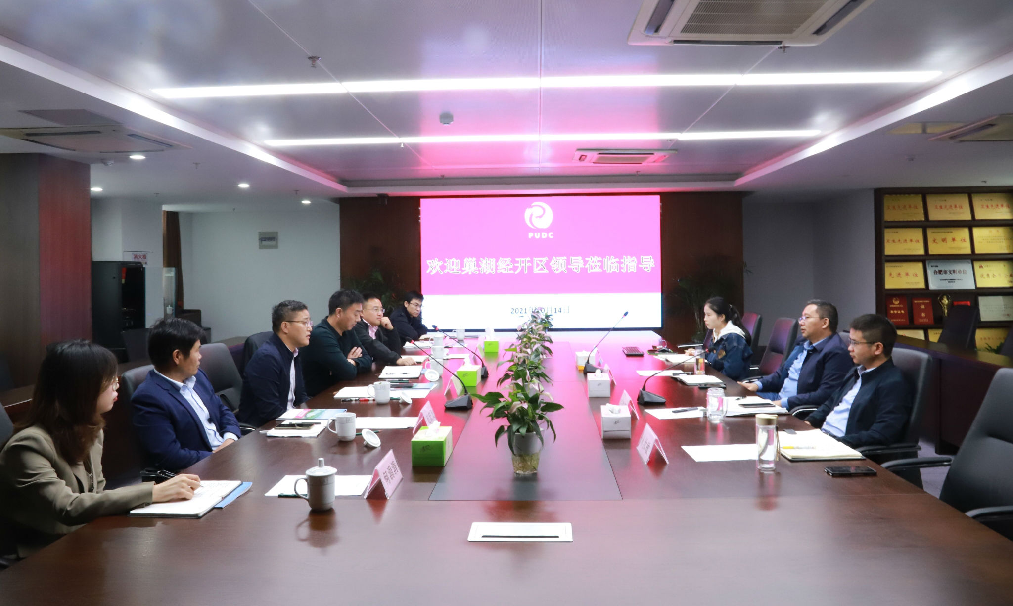 10月14日上午,巢湖經(jīng)濟(jì)開發(fā)區(qū)城管局局長(zhǎng)曾翔、巢湖經(jīng)濟(jì)開發(fā)區(qū)建設(shè)發(fā)展有限公司總經(jīng)理孔飛一行赴公司考察交流,公司總經(jīng)理劉文來、副總經(jīng)理盧鐘毓,綜合部相關(guān)負(fù)責(zé)人參加。