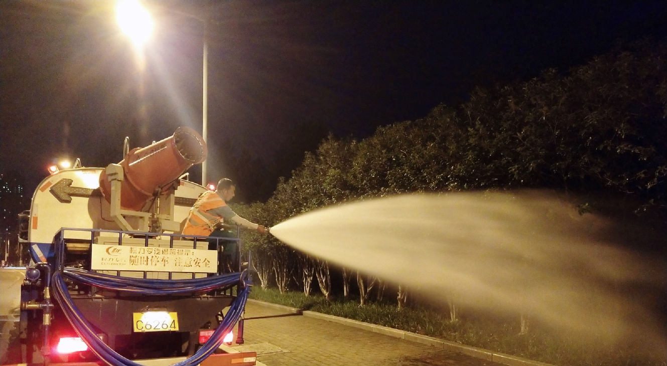 除了對(duì)綠化植物的日常養(yǎng)護(hù),綠化處還要根據(jù)天氣情況隨時(shí)應(yīng)對(duì)。今年8月,天氣持續(xù)高溫晴熱,各種綠化植物急需“喝水續(xù)命”,早有預(yù)案的綠化處快速出手,落實(shí)夜間抗旱保苗專項(xiàng)工作,每天下午5:00到晚上11:00,對(duì)區(qū)內(nèi)綠化苗木噴淋澆水。“看到白天‘蔫頭耷腦’的花花草草喝足水后又昂首挺胸起來(lái),連顏色都更加鮮亮了,就有一種成就感?!本G化主管王永輝介紹,8月期間綠化處日均出動(dòng)12輛灑水車,噴淋范圍覆蓋養(yǎng)護(hù)范圍,日均抗旱面積464.51萬(wàn)㎡。旱了不行,澇了也不行,如果遇到急暴雨,綠化帶積水也會(huì)造成植物死亡,這時(shí)就要安排人去趕緊排水。