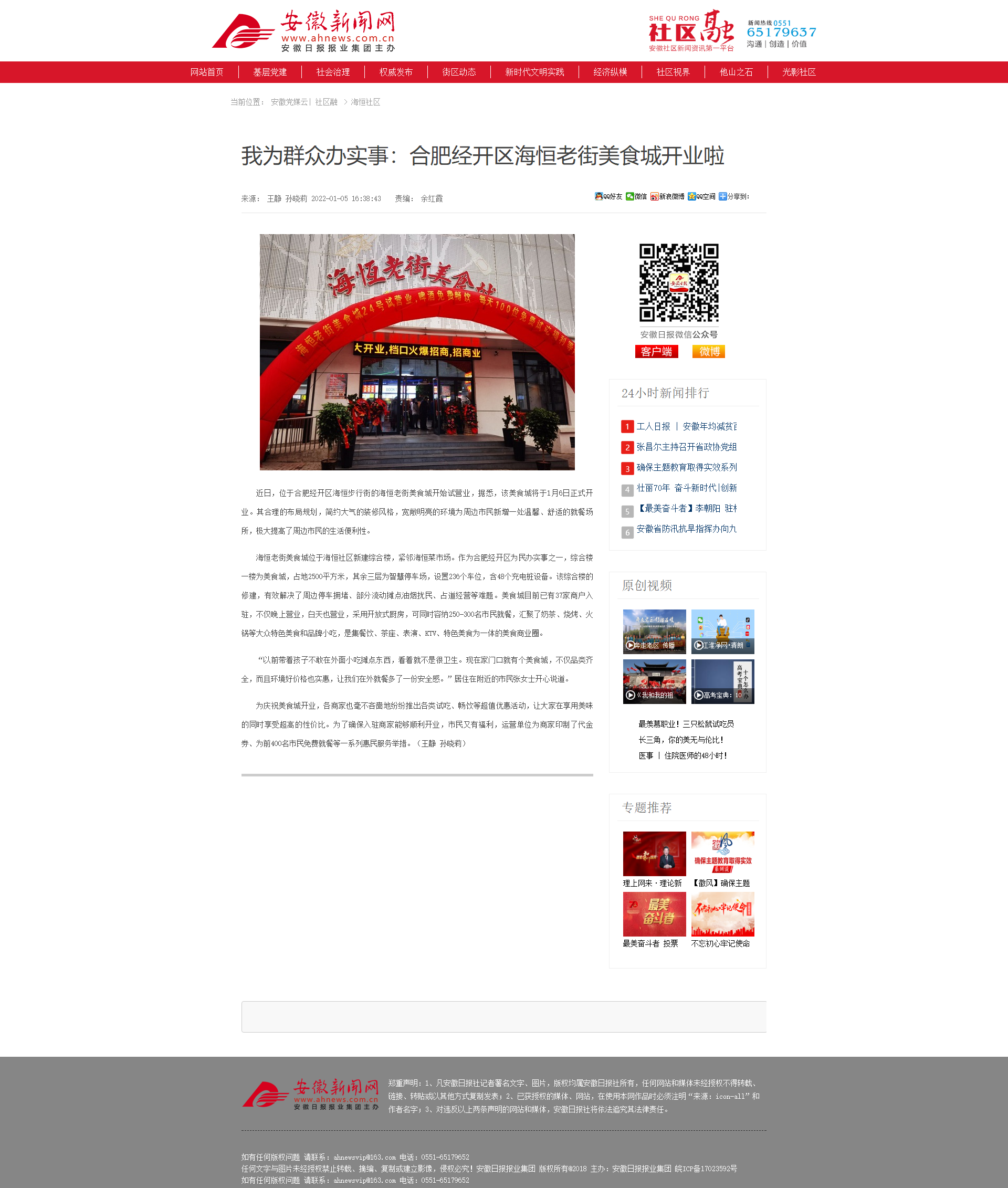 安徽新聞網(wǎng):我為群眾辦實事:合肥經(jīng)開區(qū)海恒老街美食城開業(yè)啦