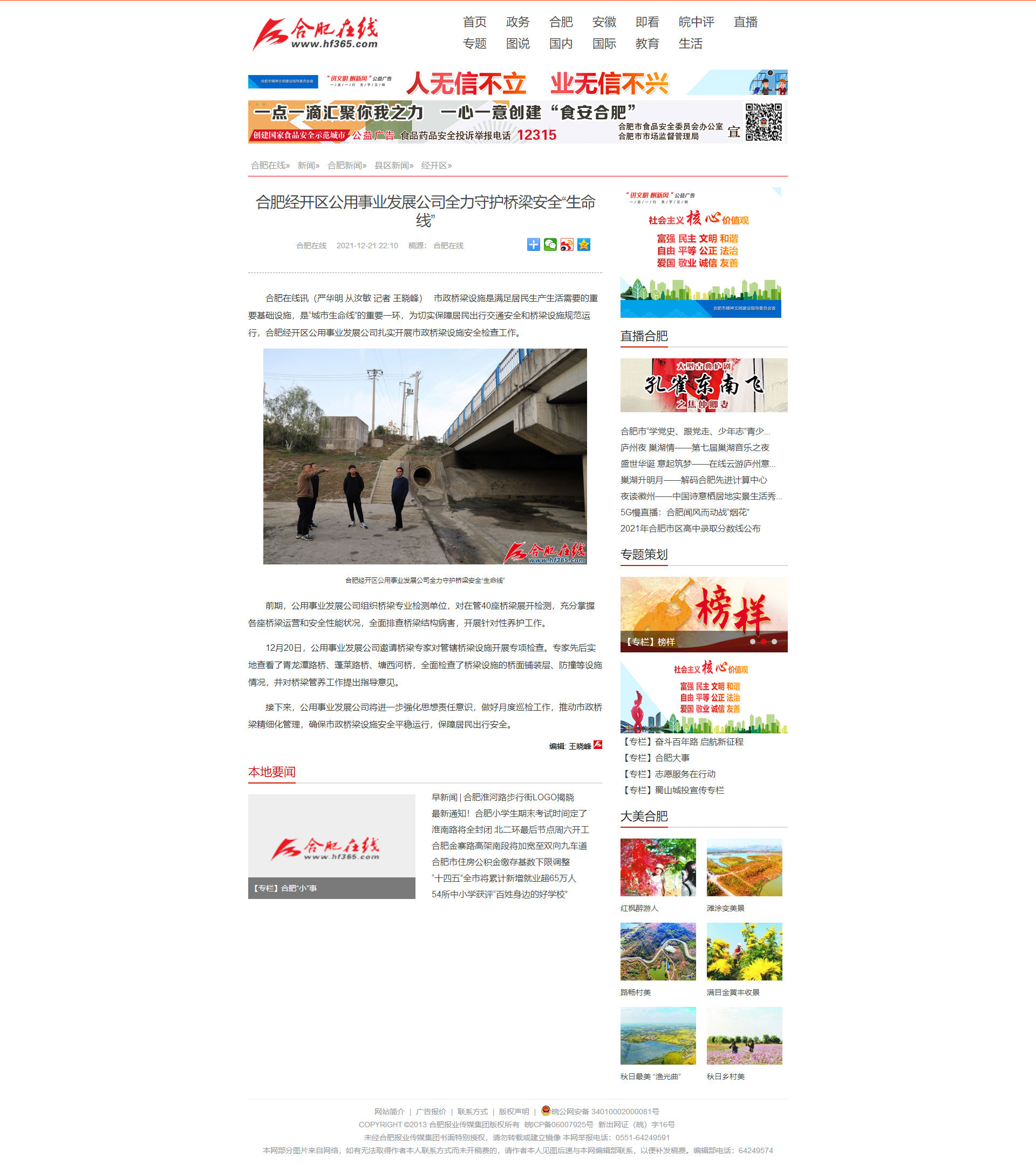 合肥在線:合肥經(jīng)開區(qū)公用事業(yè)發(fā)展公司全力守護橋梁安全“生命線”http://www.hf365.com/2021/1221/1380206.shtml