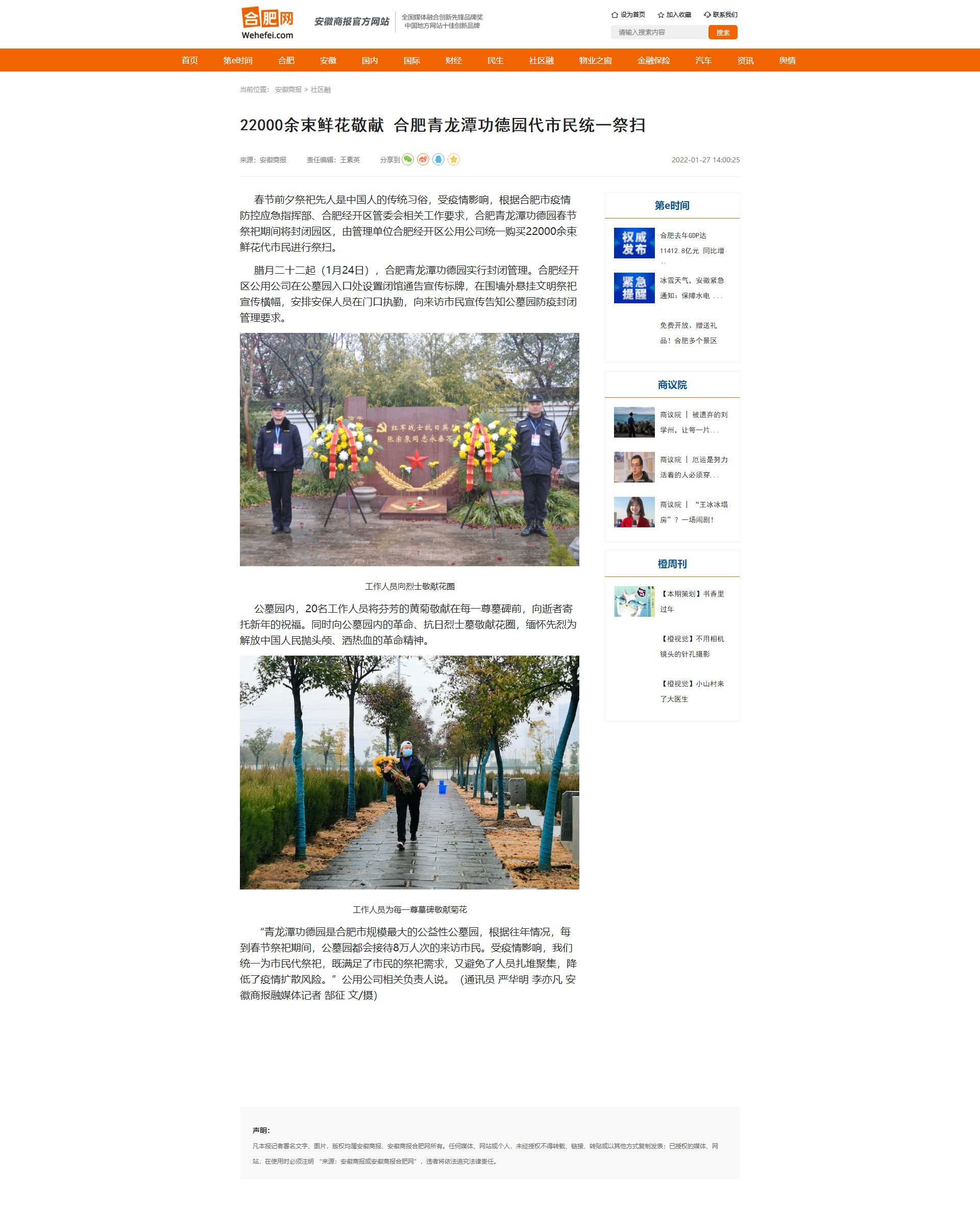 安徽商報:22000余束鮮花敬獻 合肥青龍?zhí)豆Φ聢@代市民統(tǒng)一祭掃http://www.wehefei.com/news/2022/01/27/c_398966.htm