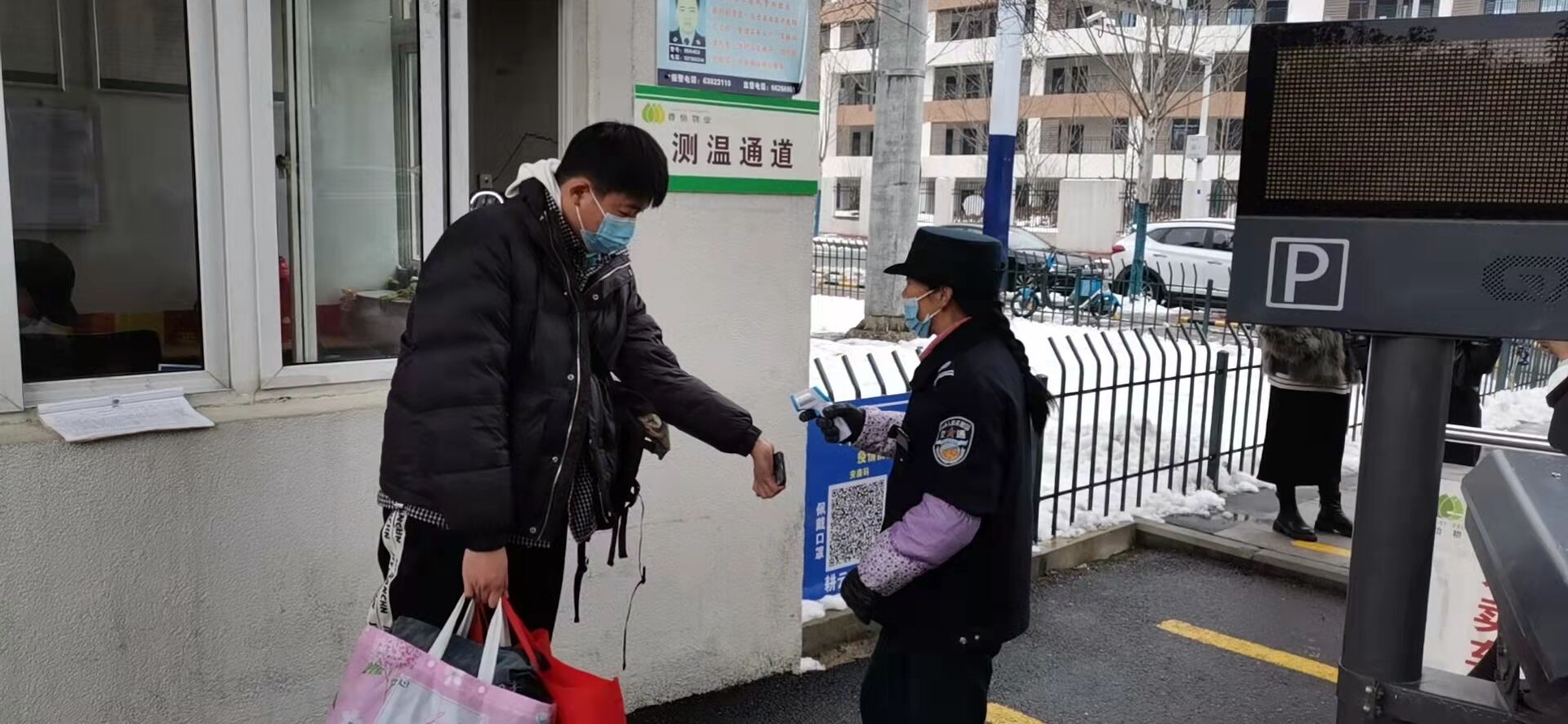 “您好,請出示一下您的行程碼及安康碼,另外麻煩您在這里做好登記”。春節(jié)前,物業(yè)小區(qū)陸續(xù)新配置了42臺立式測溫儀。春節(jié)期間,各個物業(yè)小區(qū)門口都能看到工作人員堅守“戰(zhàn)疫一線”的忙碌畫面,工作人員嚴格落實合肥市疫情防控最新要求,強化人員排查,做好測溫工作,細致核查登記每一位返鄉(xiāng)人員信息,并查驗核酸檢測陰性證明。