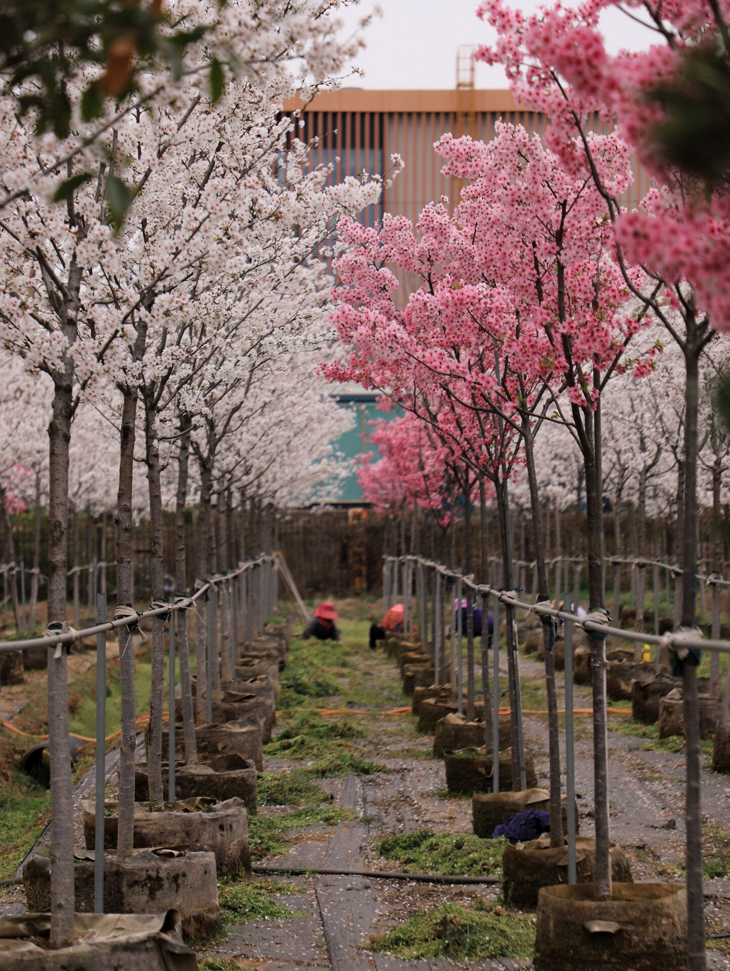 湯口路苗圃內的兩千余株早櫻、豆梨