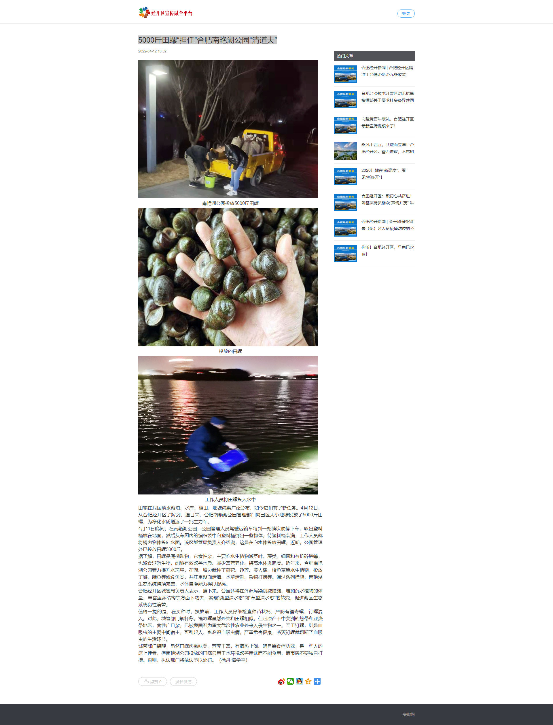 上一條:市場(chǎng)星報(bào):5000斤田螺“擔(dān)任”合肥南艷湖公園“清道夫”
