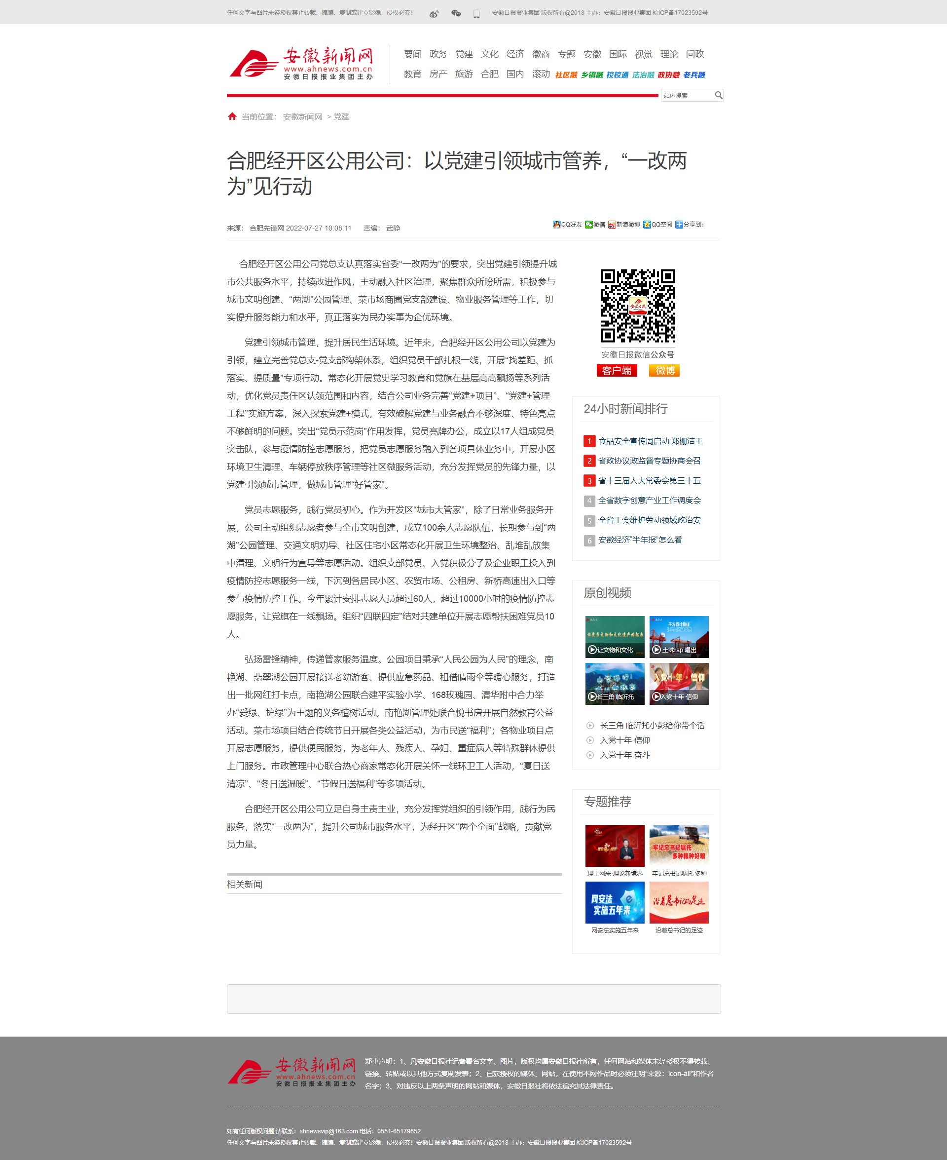 安徽新聞網(wǎng):合肥經(jīng)開區(qū)公用公司:以黨建引領(lǐng)城市管養(yǎng),“一改兩為”見行動