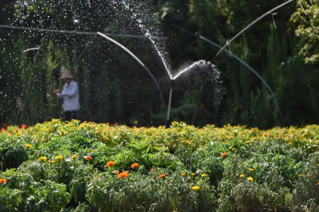帶著之前的問題,筆者向苗圃工作人員展開求證。為確?;绲纳L質(zhì)量,在采購種苗后移植到苗圃種植盆,苗圃實(shí)施精細(xì)化管理,從播種分栽到滅菌到除草、施肥等日常養(yǎng)護(hù),認(rèn)真做好每道育苗工序,保證花苗成活率。今夏苗圃通過噴灌技術(shù)一方面應(yīng)對(duì)持續(xù)高溫少雨的天氣,另一方面也大大減少人工付出,避免苗圃工人高溫下作業(yè)。據(jù)了解,湯口路花卉苗圃主要采取訂單式生產(chǎn),主要根據(jù)前一年的種植情況以及各種節(jié)假日、紀(jì)念日等,依據(jù)經(jīng)開區(qū)實(shí)際需要進(jìn)行采購、種植培育。而除了供應(yīng)節(jié)假日布展,苗圃還要負(fù)責(zé)經(jīng)開區(qū)城市綠地、公園等景觀花卉的更換,通常三個(gè)月左右更換一次。