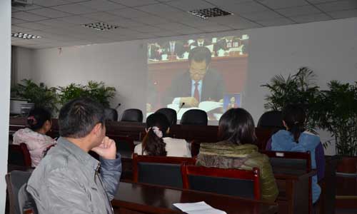 11月8日,黨的十八大隆重召開。上午九點(diǎn),公司通過網(wǎng)絡(luò)和投影設(shè)備,在電教室實(shí)況轉(zhuǎn)播了胡錦濤總書記在十八大開幕式上的重要講話。公司干部職工認(rèn)真收看。