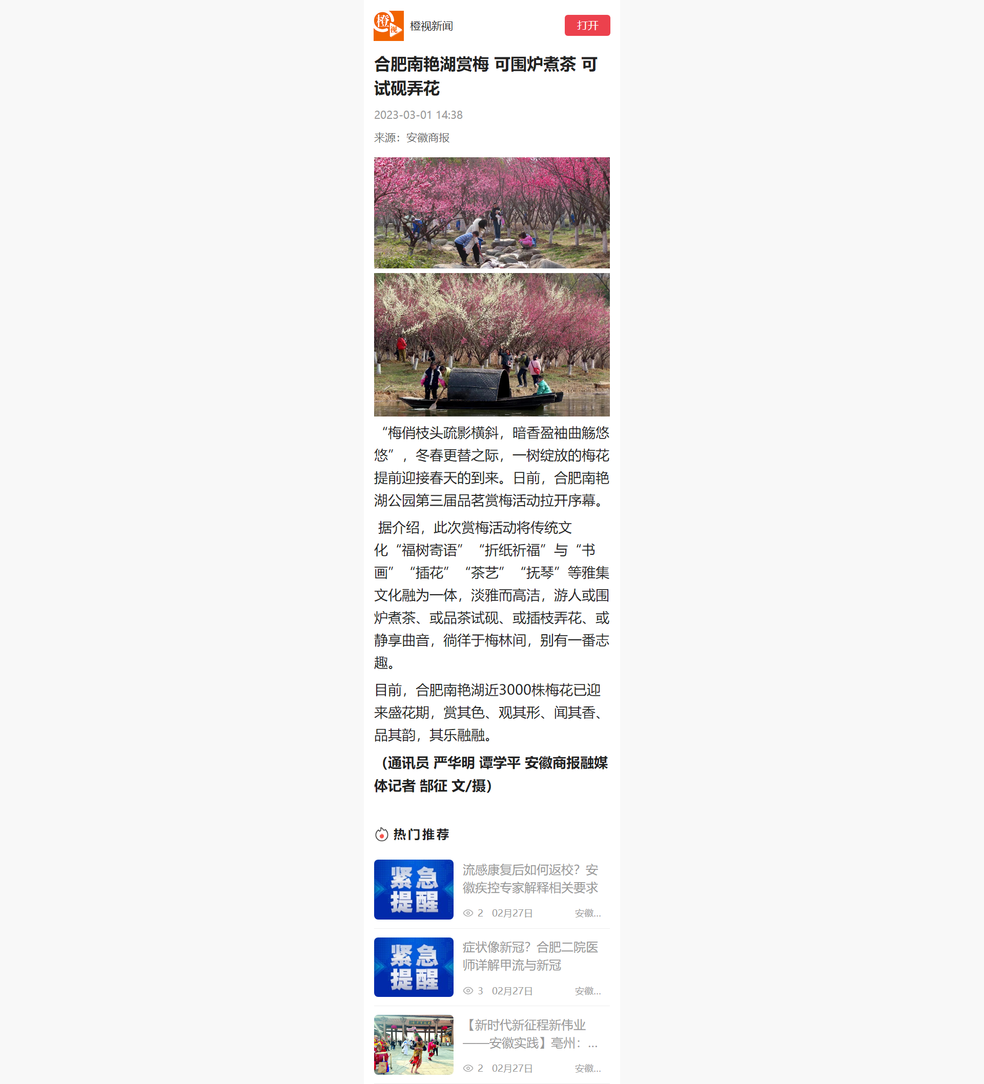 下一條:安徽商報合肥網(wǎng):合肥南艷湖春上“梅”梢