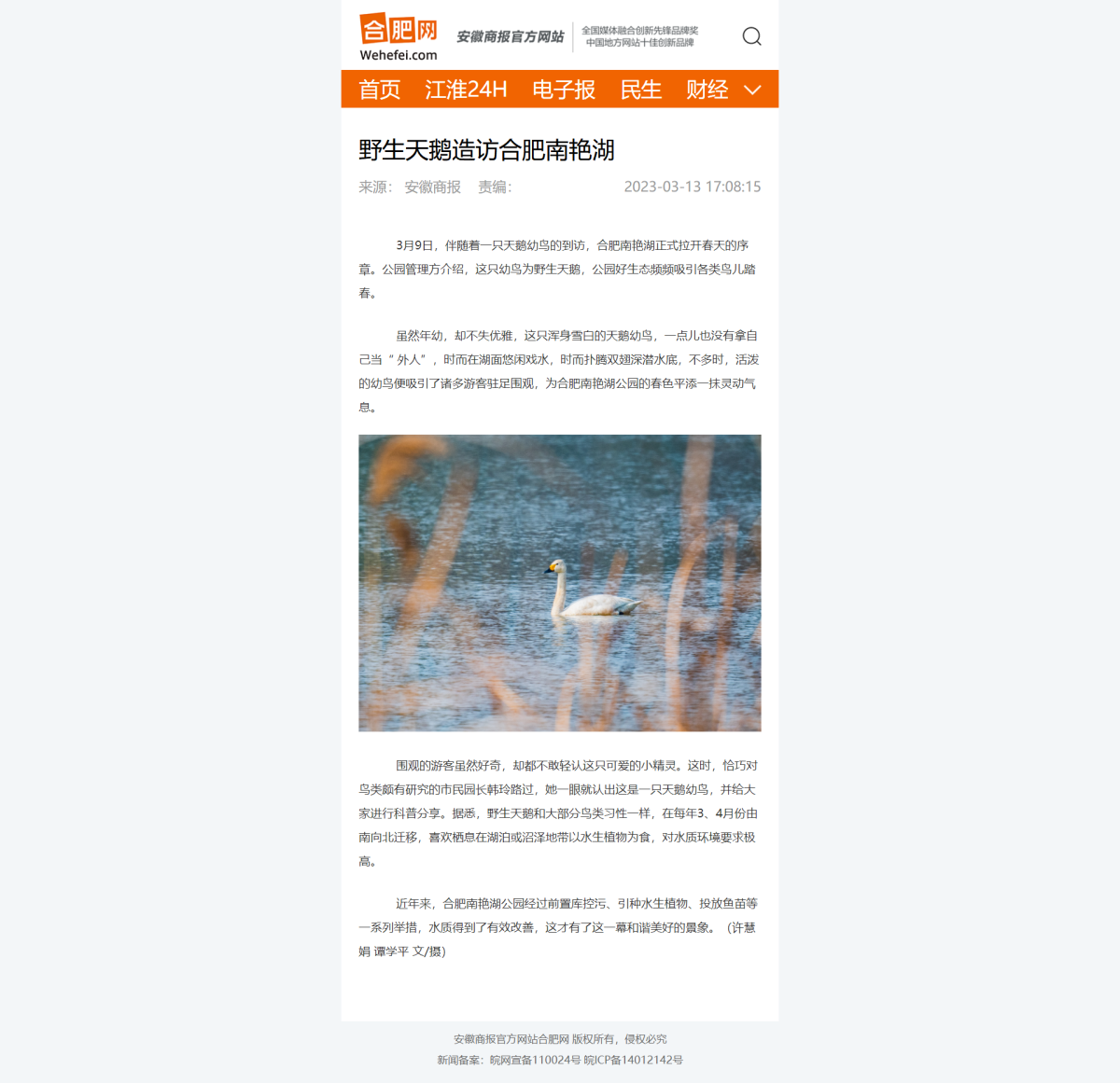 上一條:安徽日?qǐng)?bào):野生天鵝造訪合肥南艷湖