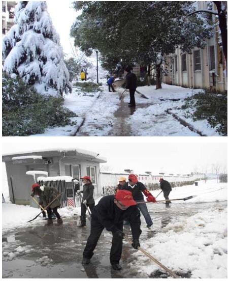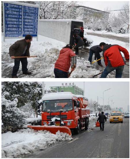 2月18日夜,一場暴雪突降。至2月19日清晨,區(qū)內(nèi)地面積雪普遍達(dá)到30CM左右,車庫頂棚、農(nóng)貿(mào)市場棚頂、主次干道、樹木上都覆蓋著厚厚的積雪,嚴(yán)重影響人們出行,對正常生產(chǎn)生活造成極大影響,并存在很大的安全隱患。公用公司啟動緊急除雪預(yù)案,出動大量人力、機(jī)械設(shè)備,對管理區(qū)內(nèi)的小區(qū)、農(nóng)貿(mào)市場、廣場、道路、綠化進(jìn)行了全面的除雪。