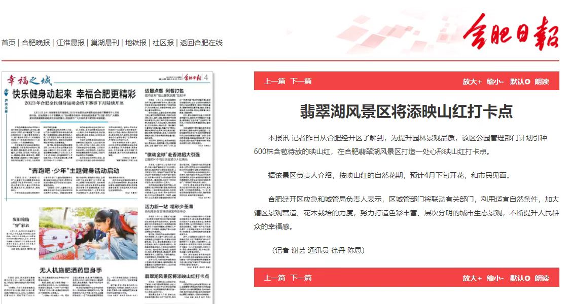 下一條:學(xué)習(xí)強(qiáng)國:合肥經(jīng)開區(qū):翡翠湖風(fēng)景區(qū)將添映山紅打卡點(diǎn)